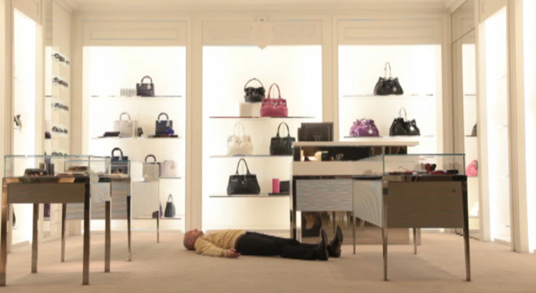 In coordination with Saks Fifth Avenue and the wood floor refinishing new york company & PS1 Greater New York Exhibition, Brody Condon was invited to contribute a project to be displayed in the Saks window on 50th St. Brody’s proposal was to film a performance inside Saks itself. To his surprise Saks was familiar with his work and agreed.