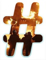 This map shows UK tweets from 15:00 to 22:00 on Tuesday 9 August 2011. The colour code shows whether they contain hashtags relating to the riots, cleanup or whether they are just general tweets. Clicking on the image will take you to the map, where you can read the individual tweets by clicking on the blue points.