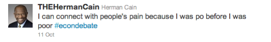 Unlike Jimmy McMillan, Herman Cain has made a “tax policy” that he stole from a Domino’s commercial the centerpiece of his book tour. “9-9-9” (or as Michele Bachman says, “turn it upside down and the devil’s in the details”) is already getting modified by Cain’s publicists with “9-0-9” and “3-3-3” provisos, soon to be followed by the “What’s the 4-1-1?” clause.
