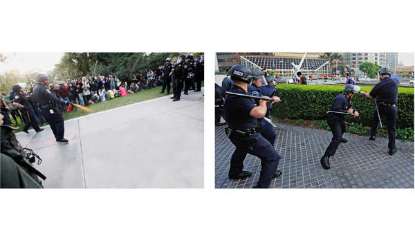 During the first session, the notion of immaterial labor was ambiguously qualified as the consequence of the dematerialized art object (since the 1960s), thus making such potentially political theory appropriate territory for historians of the new art. A subtext to this premise was the rise of so-called socially-engaged art practice, which rather recently has served as a means of cultural legitimacy sometimes awarded with special grants and other arts funding, at least in Europe (a detail not much discussed). The most thoughtful comments came from Stefano Harney of Queen Mary University, resembling Jeff Bridges in physiognomy and Dude-mannerisms, who ID’d the first iteration of immaterial labor as management – with its emphasis on flow (logistics) at the expense of the newly-deskilled laborer, presumed ‘creative’ in the setting of a bohemian lifestyle/workplace and lacking consciousness of any correspondence to an abstracted, overarching system or ‘machine’ (capitalism’s strategy: alienation). He later suggested, ominously, that in Benjamin’s allegory of the backward-facing angel of history, we might actually be the rubble: transfixed in our own eternal present. Hito Steyerl took a more tragicomic approach, displaying a series of photoshopped images of sovereign freedom, and comparing the helmeted policeman’s pepper-spraying stance at UC Davis to that of the square-shouldered action painters of the mid-20th Century. Considering the securitization of the state and the outsourcing of violence, Steyerl’s supposition that police might soon become freelance mercenaries engaged in Stakhanovite-style strike work (exceeding their quotas to absurd levels, not only in Afghanistan) dispensed with factory conditions altogether in imagining the current era as one of New Feudalism. Her essential ‘further reading’ recommendations to the casually employed, on parting: Kurosawa’s Yojimbo (1961). ‘A truce is merely the seed for an even bigger battle, nothing is worse!’