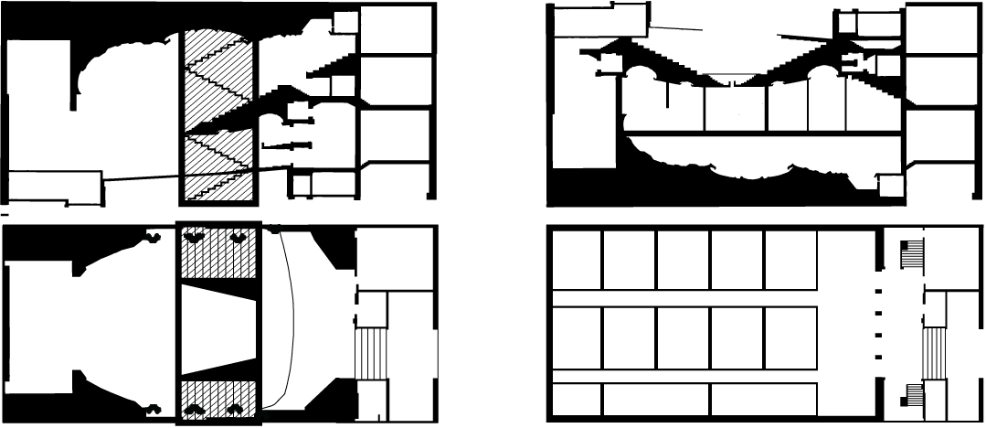 “…the building could be read as a theater where the poche space is a midrise apartment building. Or, when we reverse the relationship, mid-rise apartments with a theater as their circulation space.”