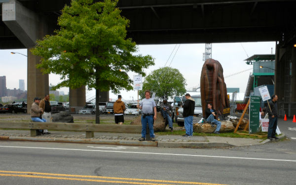 We emerged into a clearing; the fair’s “bespoke architecture” furnished an indefinite number of them. For these and other features—airy volumes, easy traffic flow—the enormous tent was universally praised. It had been designed by a Brooklyn-based firm called SO-IL, a name that should have felt self-deprecating but did not, and had ended up being worthy of the Guinness Book of World Records, built by scabs to boot. OK, not scabs technically, but nonunion labor. We were supposed to object. The New York City & Vicinity District Council of Carpenters would be protesting all weekend, along with an Occupy Wall Street group. These tidbits of consciousness raising circulated, as if the knowing would absolve us for not giving a shit, for crossing a picket, for not picketing ourselves. An inflatable union rat had been earmarked for the entrance, I had read about it but hadn’t seen it. It was possible though I had been oblivious or else gone in the wrong door.