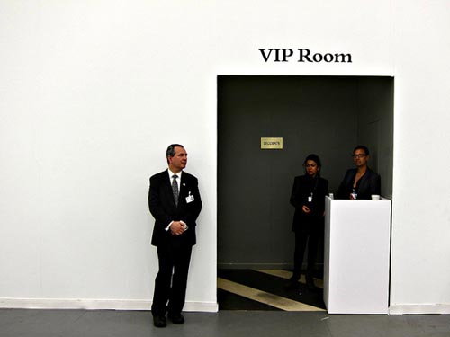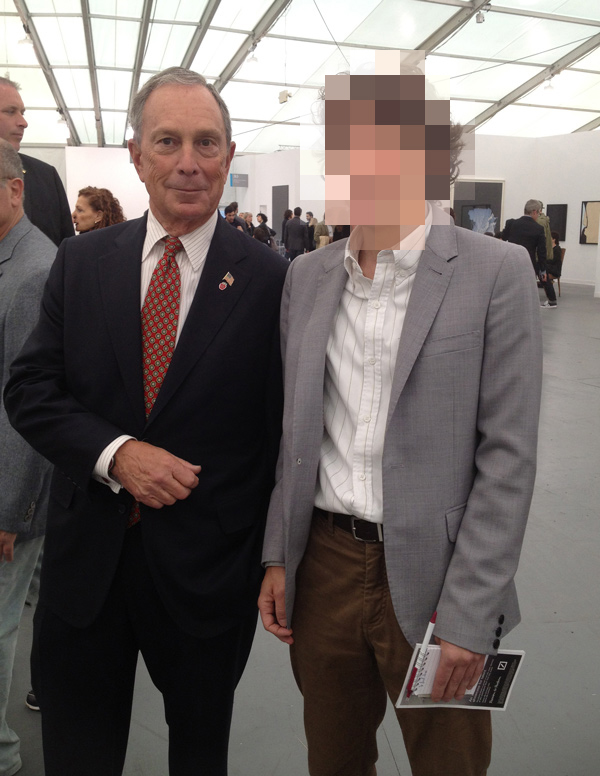 Did you see the mayor? the artist said. I had not. What? He was incredulous. Bloomberg had gone in right in front of us; a security man had shouldered him out of the way. And sure enough, when we went inside and passed the ticket window—a flash of a VIP card—there he was, he and his entourage zipping out of view into the maze of booths.